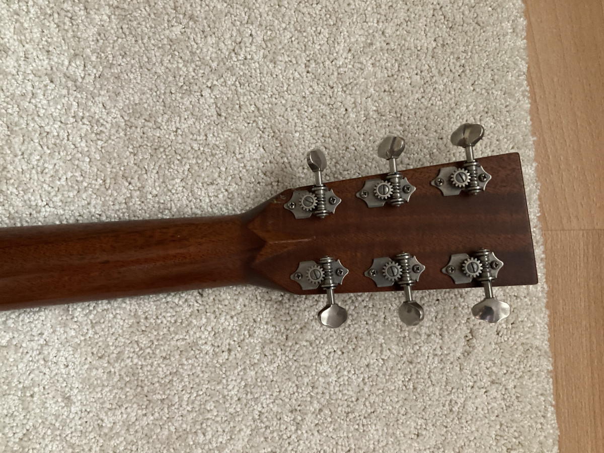 État moyen, elle a bien vécu, subi quelques péripéties et remise en état entraînant aucune incidence sur le jeu et le son de la guitare ????