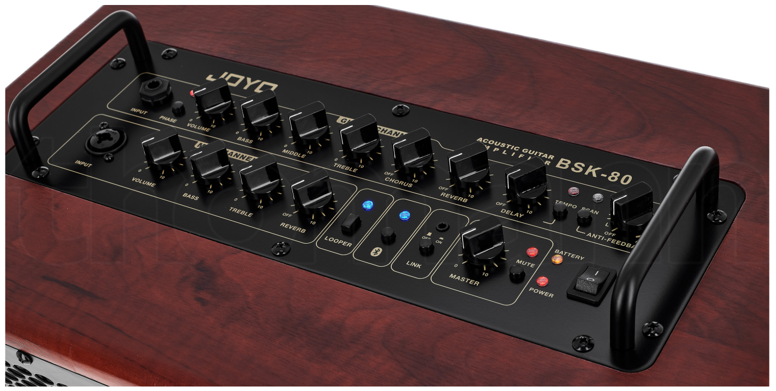 Contrôles du canal Guitar: Volume, Bass, Middle, Treble, Chorus, Reverb, Delay, Anti-Feedback