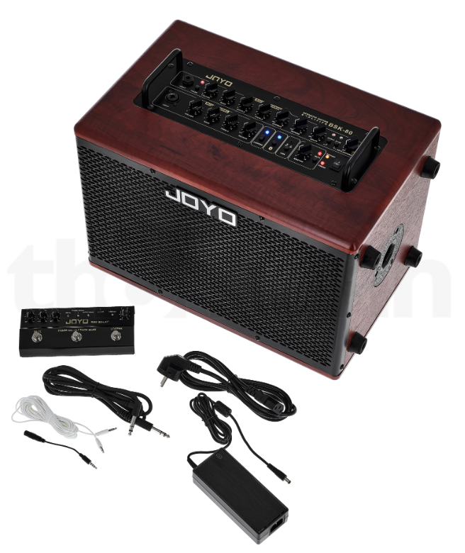 Batterie rechargeable, footswitch et bloc d'alimentation inclus.