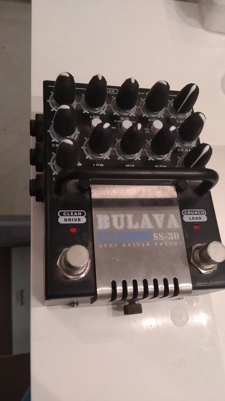 Un préampli au format pédale AMT SS-30 bulava. Trois canaux, boucle d'effets, alimentation par pile ou secteur (fourni). J'en demande 150 euros, sachant que c'est la moitié du prix neuf et qu'il est dans un état neuf. Bon y'a un peu de poussière dessus.
