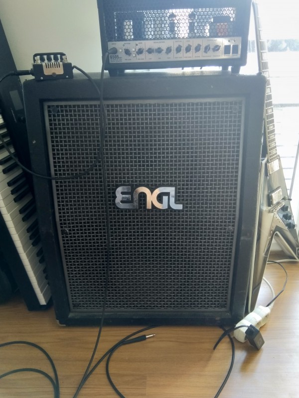Un baffle ENGL 212, première génération, monté en V30. Le baffle fait 16 ohms en mono. Il est dans un état de fonctionnement parfait, mais le tolex est abimé par endroits. J'en demande 250 euros. Autrement dit, le prix des HP...
