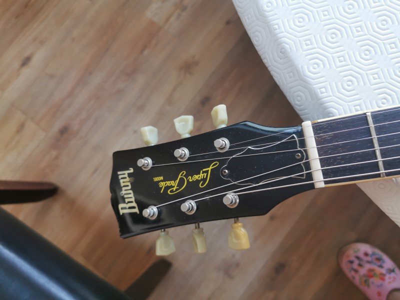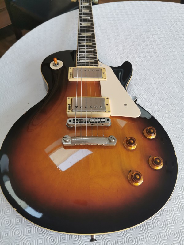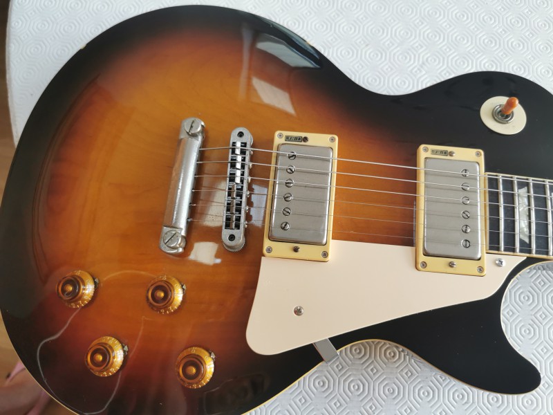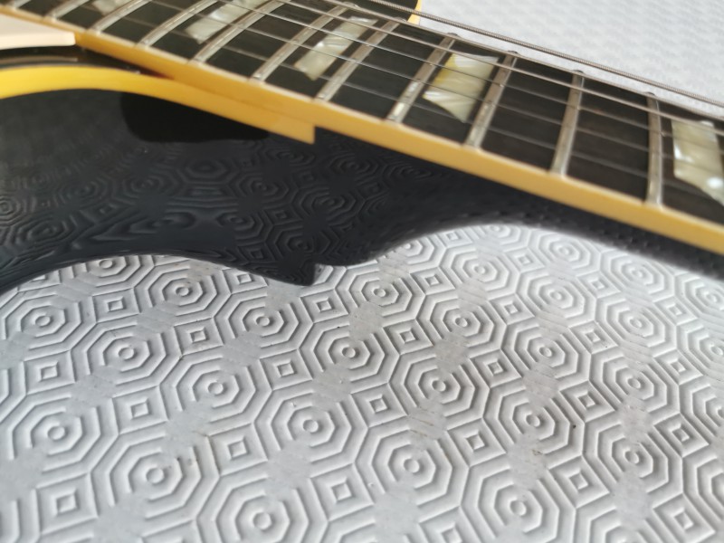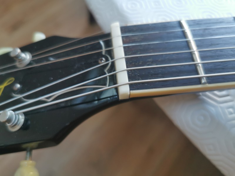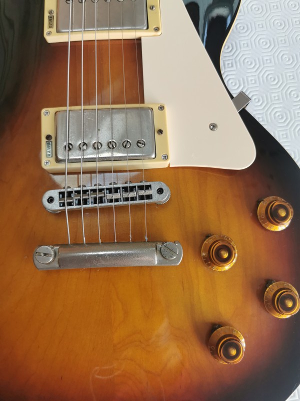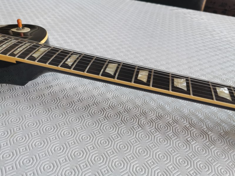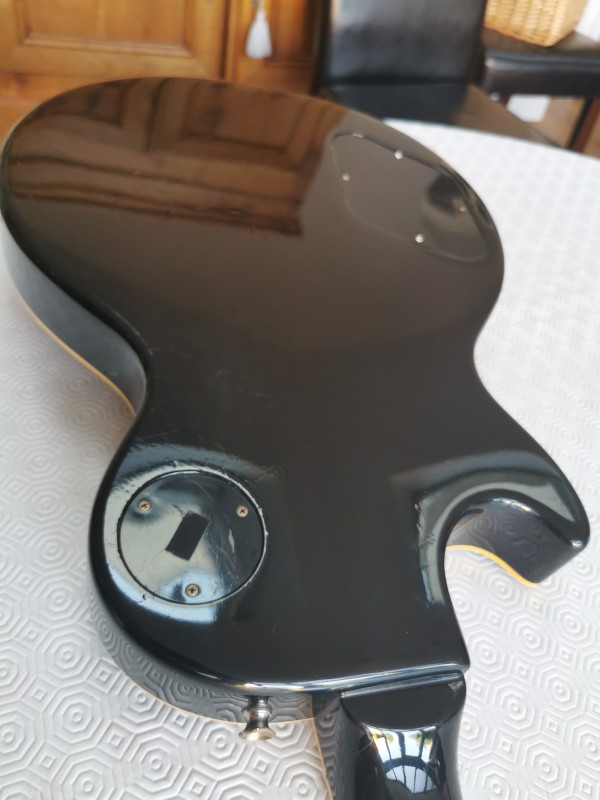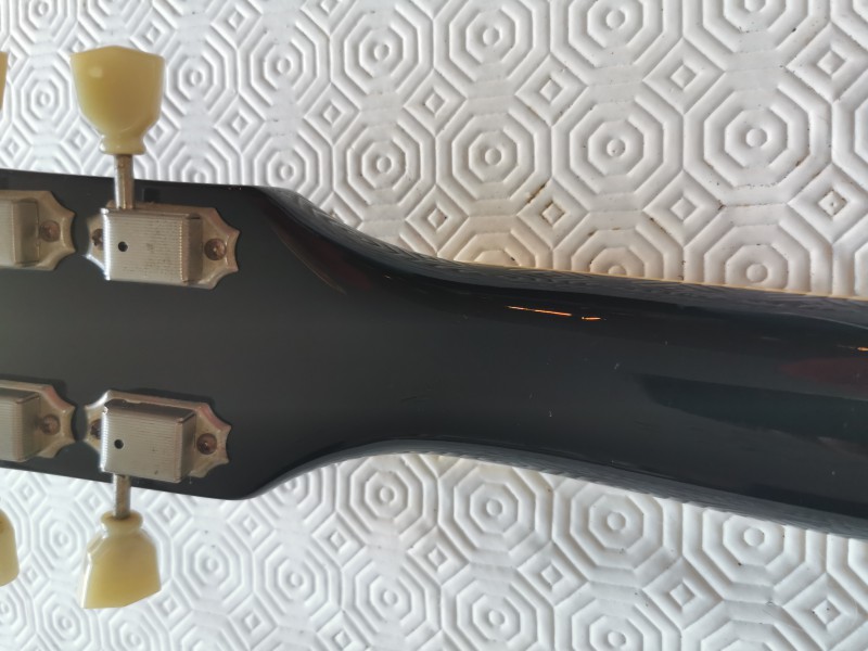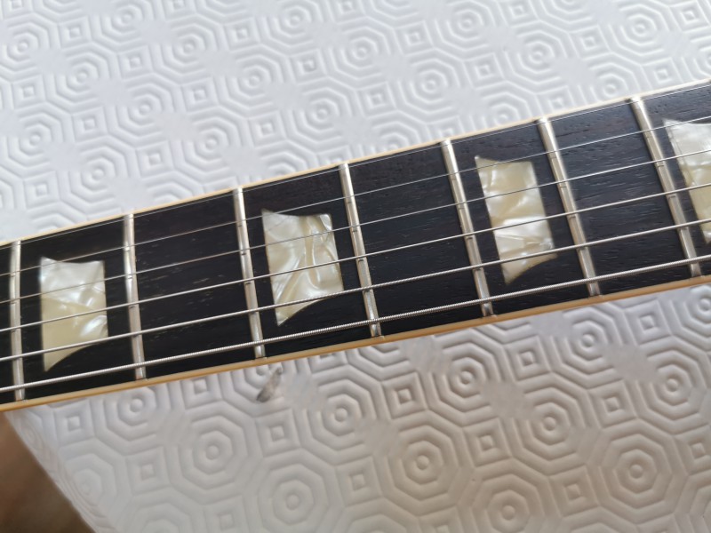 La guitare est en très bon, quelques pocs et un petit bout de binding à sauté au moment du changement de sillet.