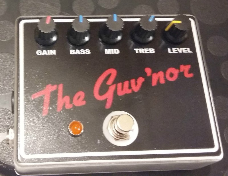 Je vends un clone DIY Marshall Guv'nor overdrive en excellent état. Acheté neuf en 2016 à un vendeur anglais sur ebay et très peu utilisé, uniquement à la maison. C’est une overdrive de type Marshall-in-a-box ( évidemment ). le son est très proche de l'original et la qualité de fabrication excellente ( niveau boutique ). True-bypass