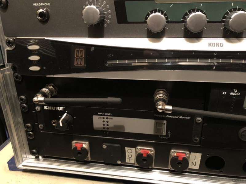 - Un système sans-fil Shure ULXS4. Première main. Vendu avec son adaptateur pour rack, un second émetteur (quelques traces de colle / gaffer), 2 câbles coudés Neutrik sur mesure, manuel, et carton d'origine. Adaptateur IEC fourni (si alimenté par un stabilisateur type Furman).