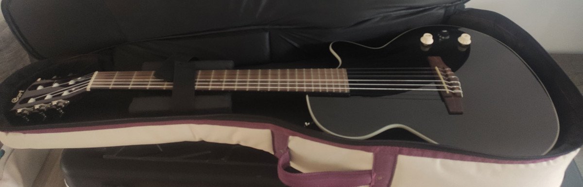 Je vends ma superbe Cort Nylectric noire achetée chez Woodbrass début 2022 au prix de 609 €, c'est une Made In China.