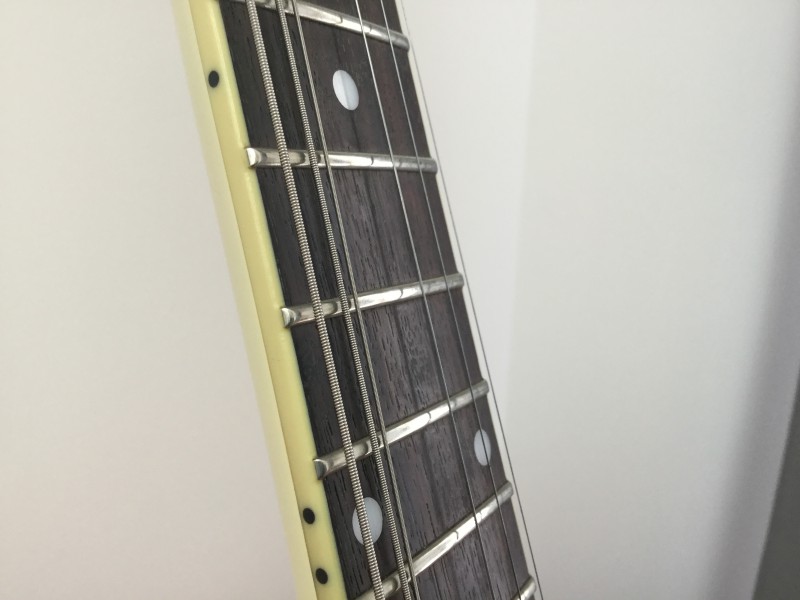 La finition est excellente, vibrato très stable - elle ne se désaccorde pas -, elle sonne super bien et son état est absolument irréprochable. Frettes dans un état proche du neuf.