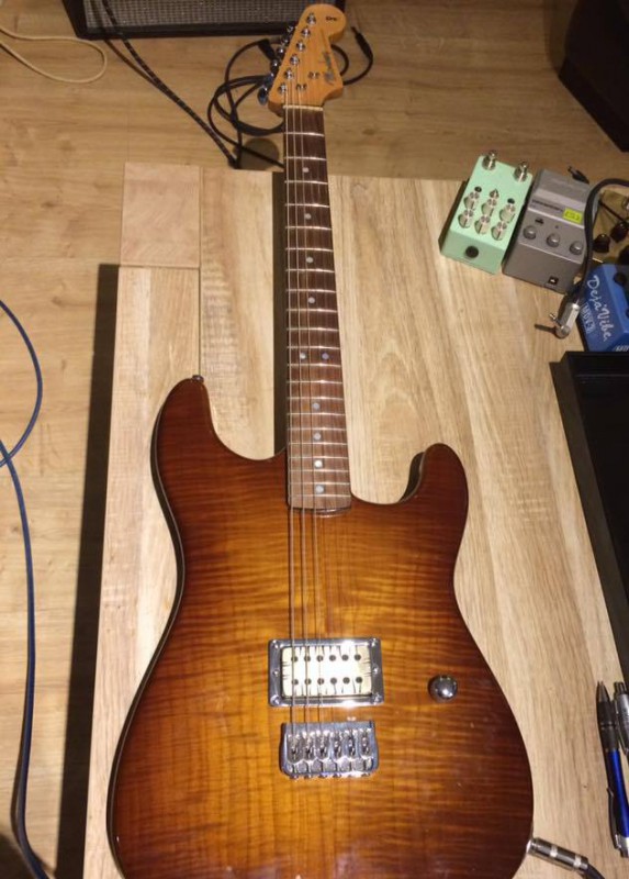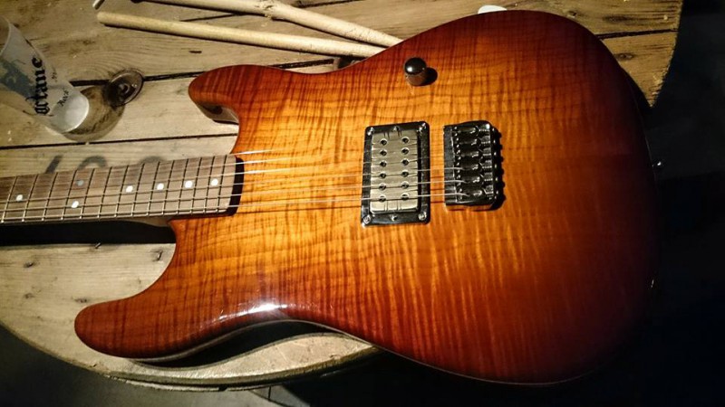Cette SwissCaster est un custom unique, corps Aulne, table érable incroyablement belle, un très beau burst, bridge hipshot, manche érable/palissandre et un micro Bareknuckle "Warpig" qui délivre un son puissant et chaud...