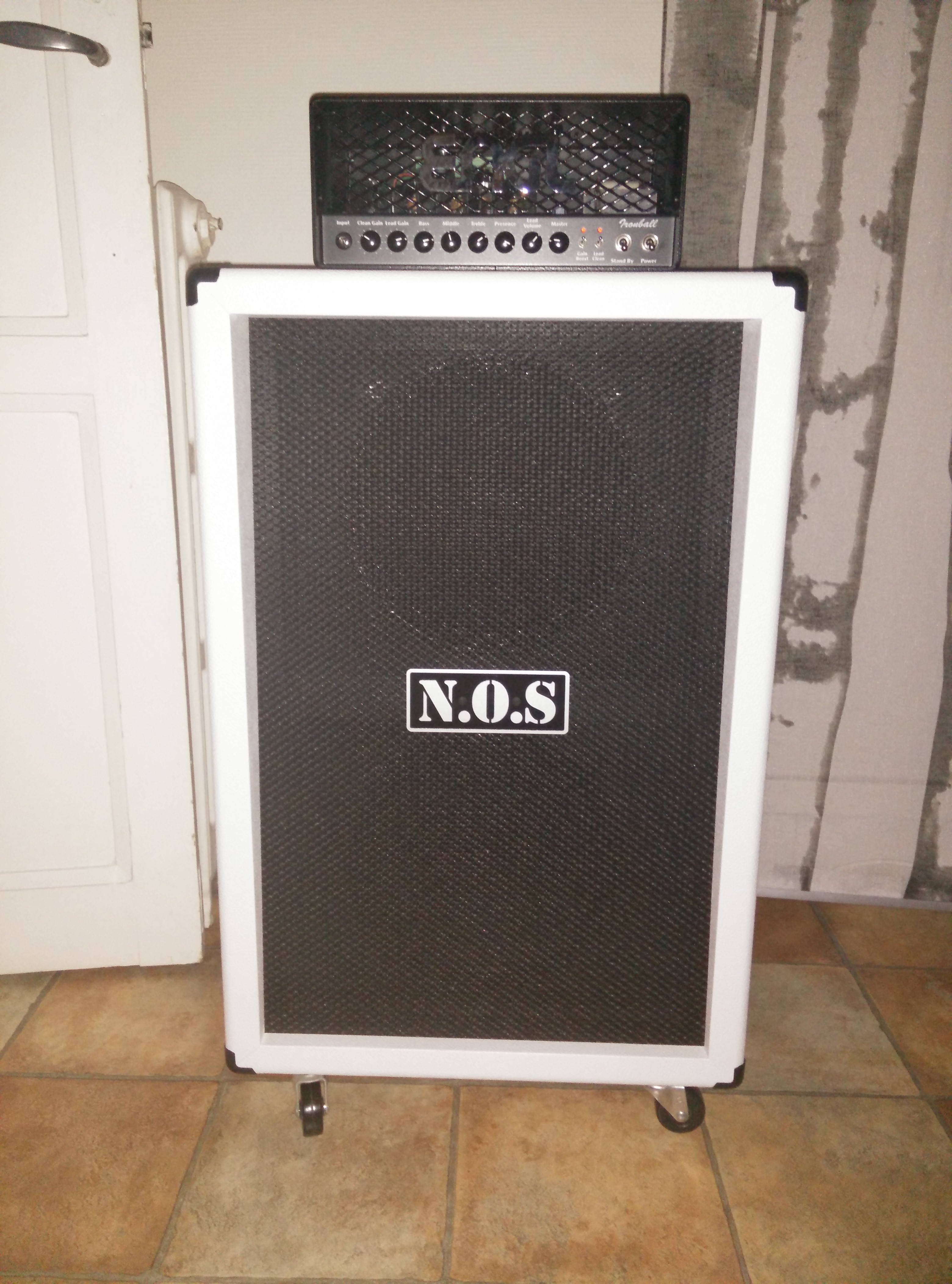 Le baffle a été fabriqué à la main en France. C'est du matos pro. C'est un 2 * 12" vertical de H:82cm / L: 51cm / P: 39 cm. Il est fourni avec des roulettes. Les deux HP sont des Celestion V30.