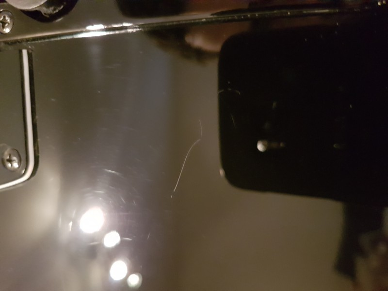 En ce qui concerne l’état de la pelle c’est une seconde main, une petite rayure sur la table avant due à l’ancien proprio (cf photo). Sinon moi j’ai bien rayé le pick guard mais c’est pas fait pour ça non à la base