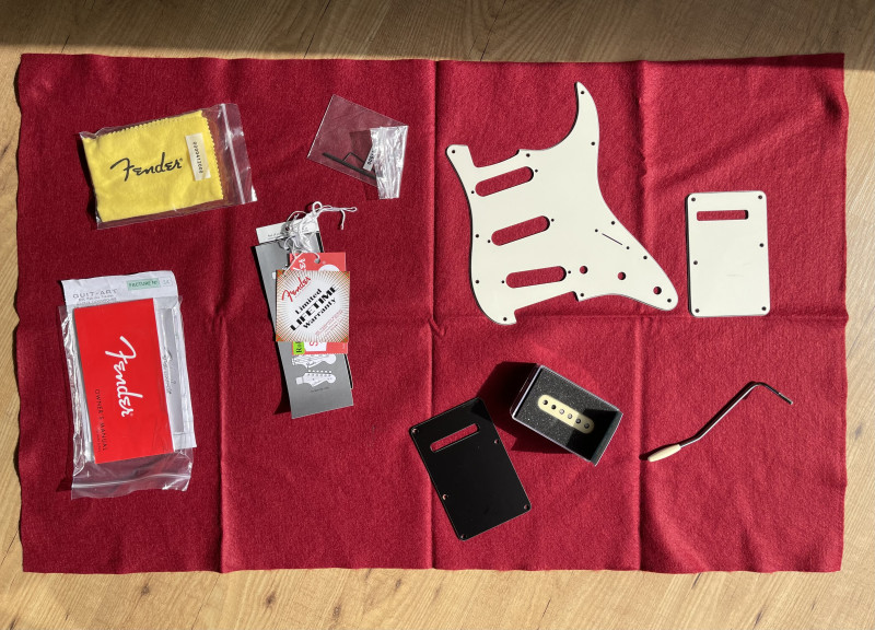 Fourni un pickguard supplementaire Aged White de marque Fender.