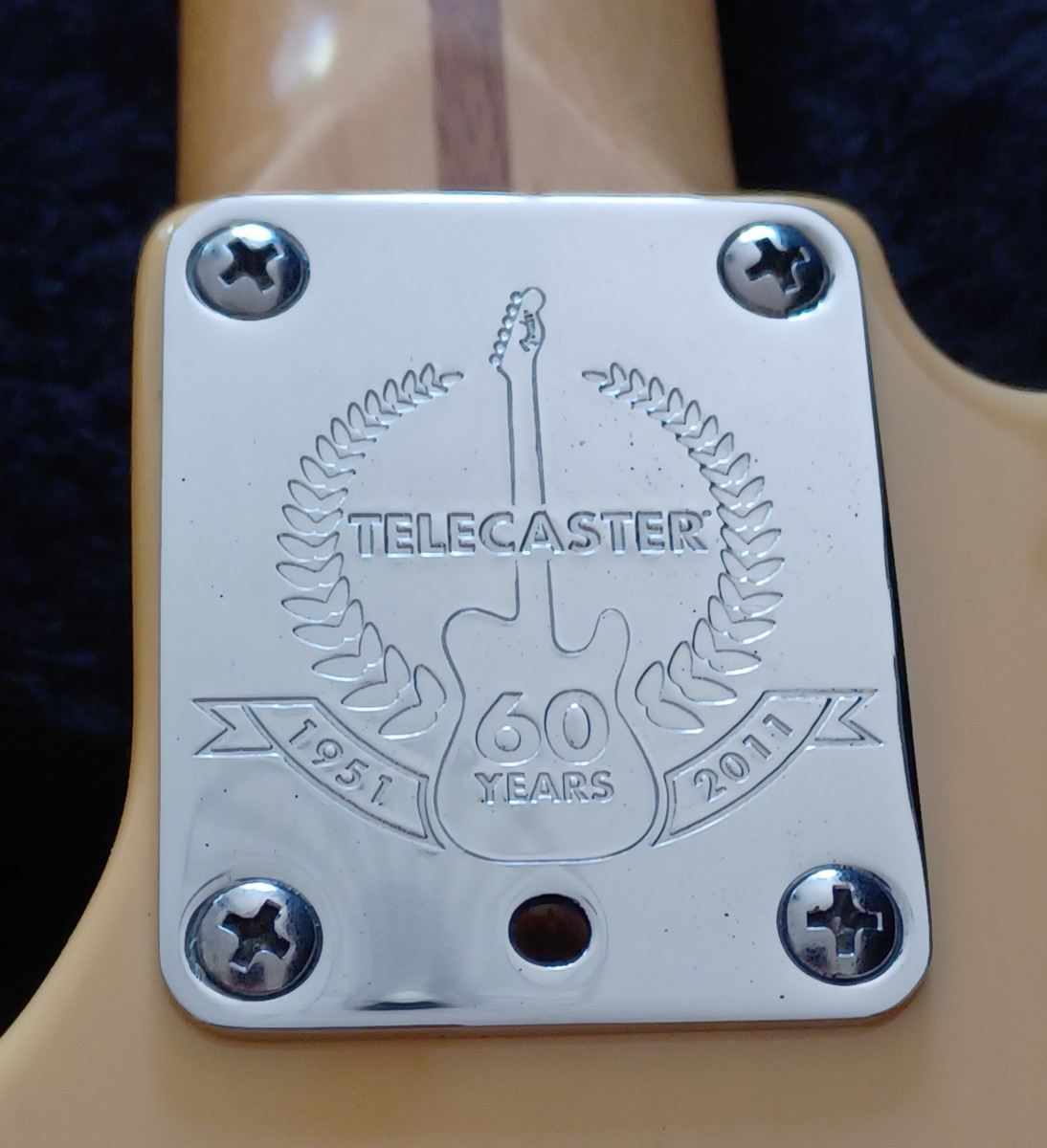 à vendre cette Telecaster de 2011, série limitée réalisée en 2011 uniquement pour les 60 ans du modèle emblématique de Fender. Il s'agit grosso modo d'une American Standard avec des finitions plus abouties, en particulier un vernis plus fin sur le corps.