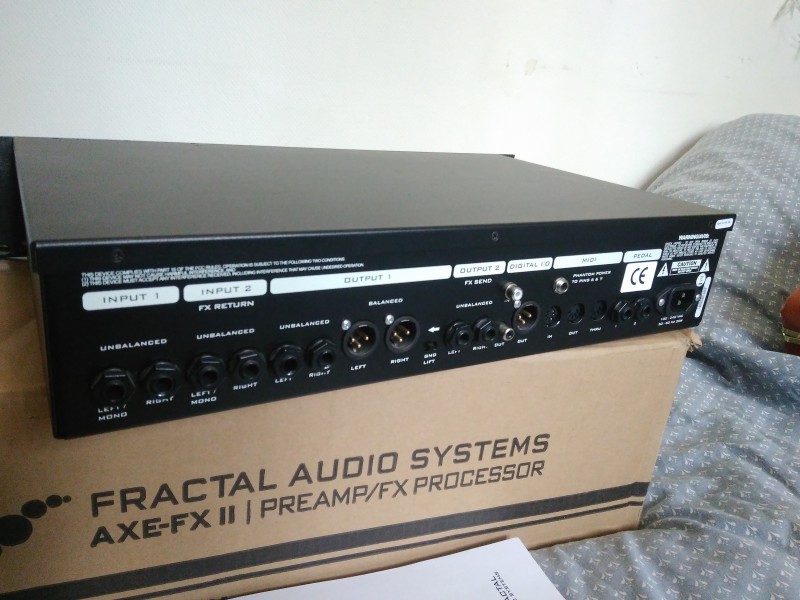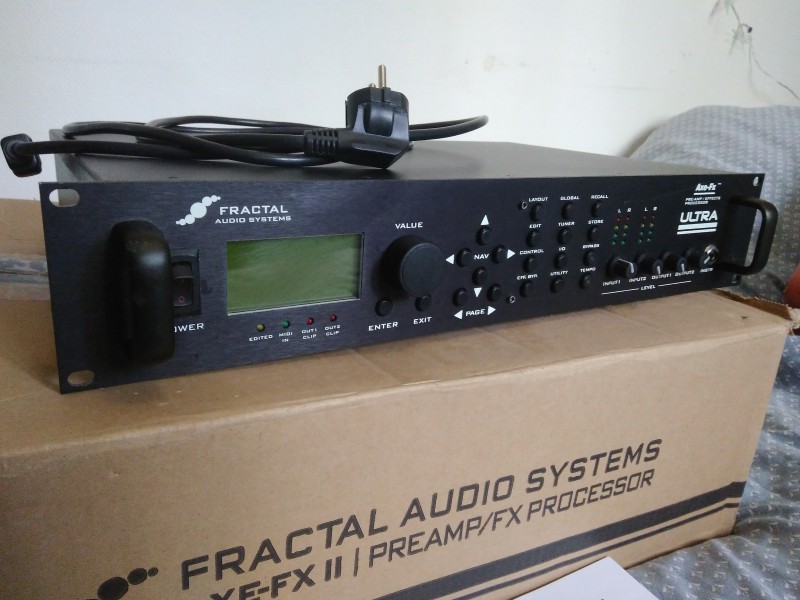 Pour cause de changement de matos (retour à l'ampli à lampes), je souhaite me séparer de mon Axe FX Ultra. Il s’agit d'une seconde main, je l'ai acheté sur Ebay en janvier 2013 à un particulier Allemand. Il est en parfait état, cosmétique comme fonctionnel. Je n'ai jamais rencontré aucun problème avec. Toujours utilisé en intérieur dans ma chambre, pas de concert ou autre demandant du transport.