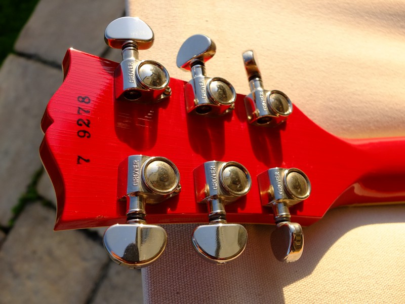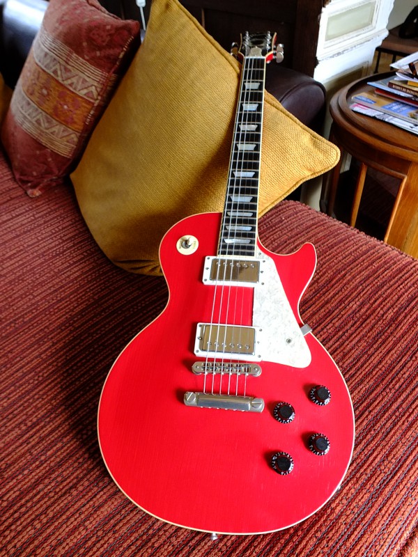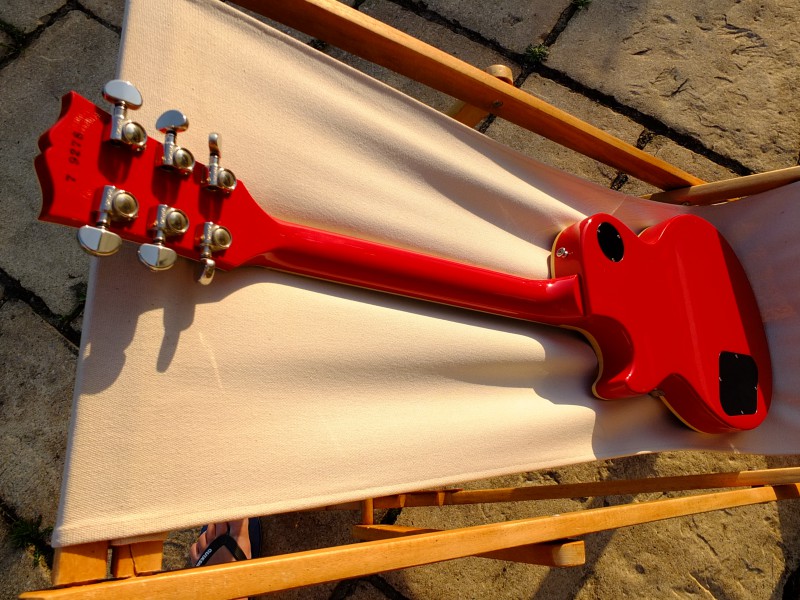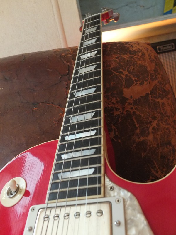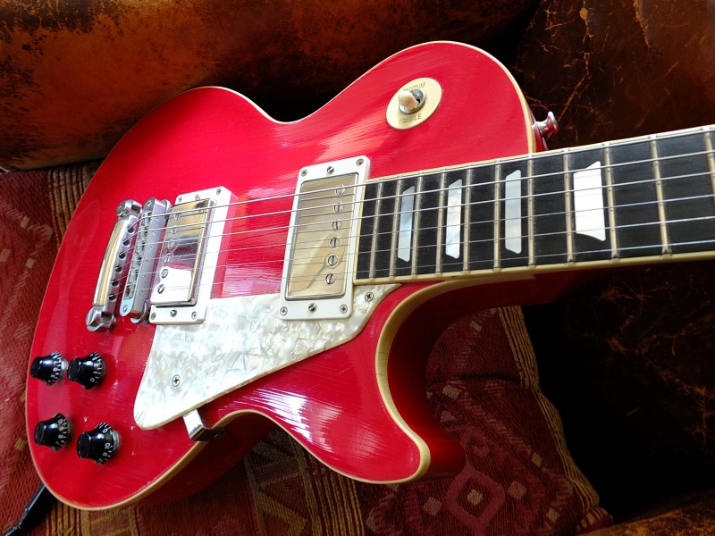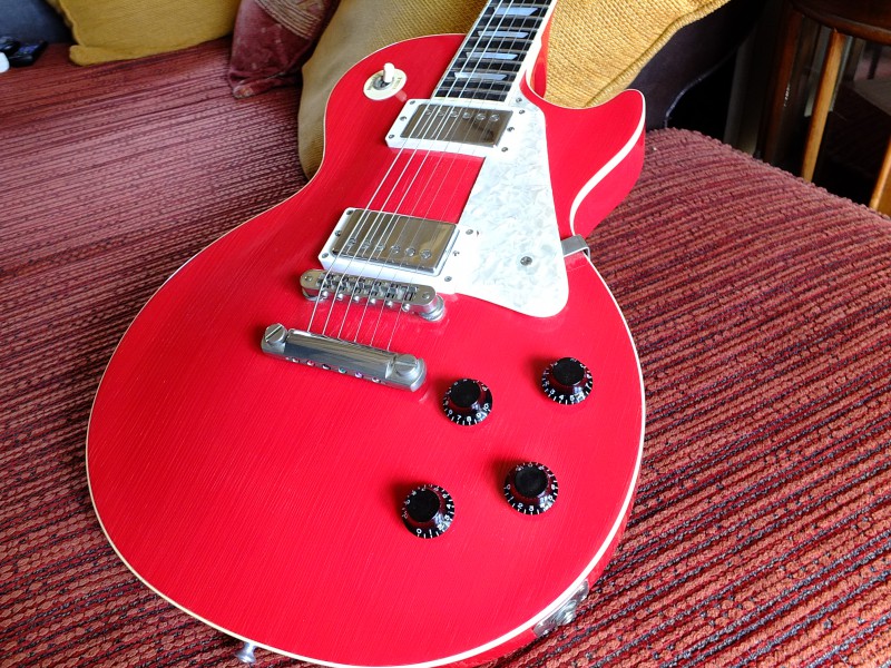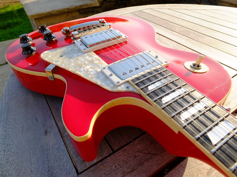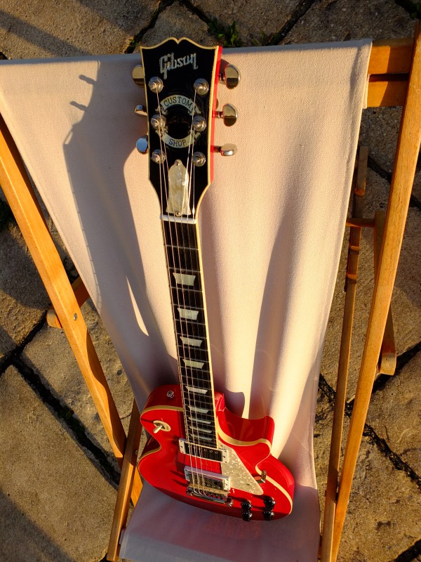 Modèle rare. Le Custom Shop n’en a produit qu’entre 1997 et 1999. Entièrement d’origine et en très bon état. Les quelques traces d’usure et son vernis nitro merveilleusement craquelé lui confèrent un charme supplémentaire. Finition Riverside Red, la plus rare des 3 finitions proposées par le Custom Shop. Chambered mahogany body (légèreté et résonance). Ebony fretboard. 57 Classic humbuckers…