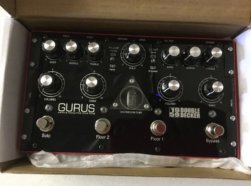 Je vends une Gurus 1959 Double Decker overdrive / distortion dont le canal solo est défectueux : en appuyant sur le switch on a un mauvais son fuzz dégueulasse et en montant le niveau du solo le son de la pédale disparait. il est donc inutilisable. sinon le canal floor 1 et floor 2 sont fonctionnels, je dois préciser qu’on entend un léger bruit de fond sur floor 2 (comme un buzz). avec boîte.