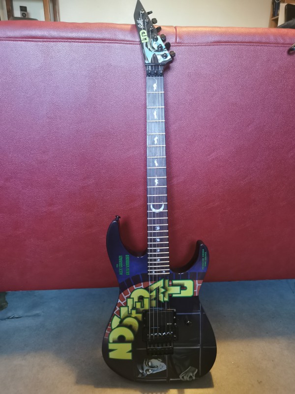 Je vends une esp ltd nosferatu signature kirk Hammett numéro 81/300, état impeccable, très peu jouée, manche vissé, floydrose 1000, 1 humbucker emg 81. Etuit rigide tombstone.