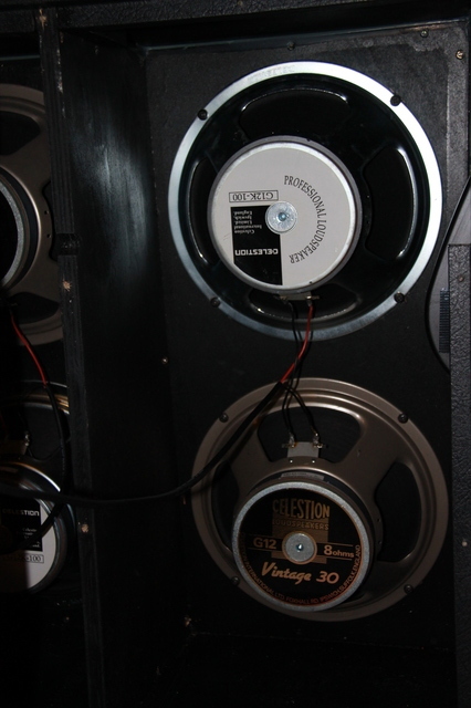 Je vends cet excellent 4x12 NOS avec 2 v30 et 2 g12k100 montés en X, impédance 8 ohm mono et 2x16 en split