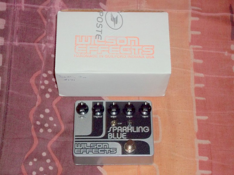 Je vends une pédale Wilson Effects Sparkling Blue overdrive en parfait état. Cette pédale est basée sur la Marshall Guv'nor avec des clippings additionnels. avec boite.