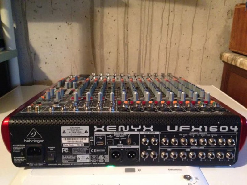 Table de mix Behringer ufx 1604 qui permet aussi d’enregistrer directement sur disque dur ou clé usb, mais aussi d’enregistrer en multipistes sur un ordinateur…