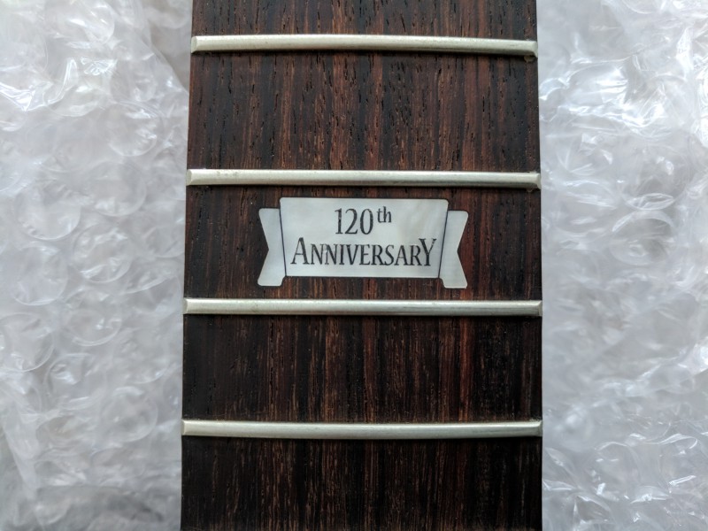En l'occurrence, il s'agit d'un corps/manche de Les Paul LPM made in USA, avec incrustation commémorative au niveau de la douzième frette.