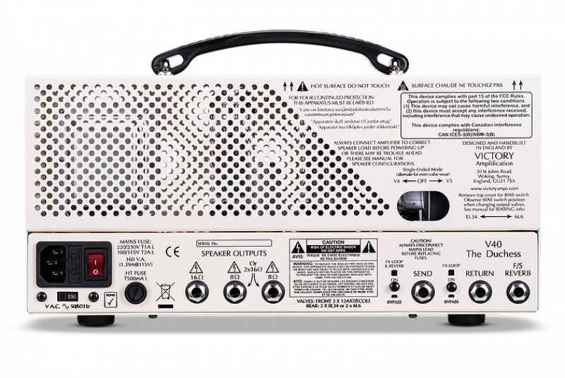 Contrôles: volume, treble, middle, Bass, Reverb et Master, commutateur Voice I / II