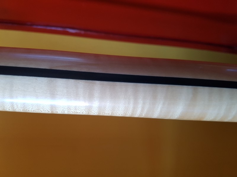 Le binding autour de la table n'est pas un plastique rapporté (comme sur une LP Standard), c'est la tranche de la table en érable rapportée qui n'est pas teintée.