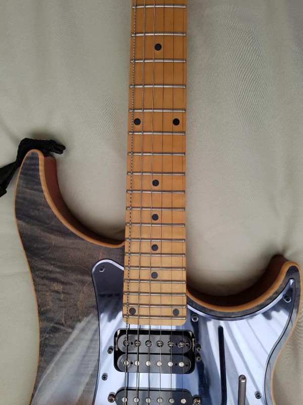 A l'échange uniquement je ne veux pas de vente. Le prix d'échange que je fixe et j'estime est de 2000 -2200. On est loin d'une custom normale de par son corps acajou.