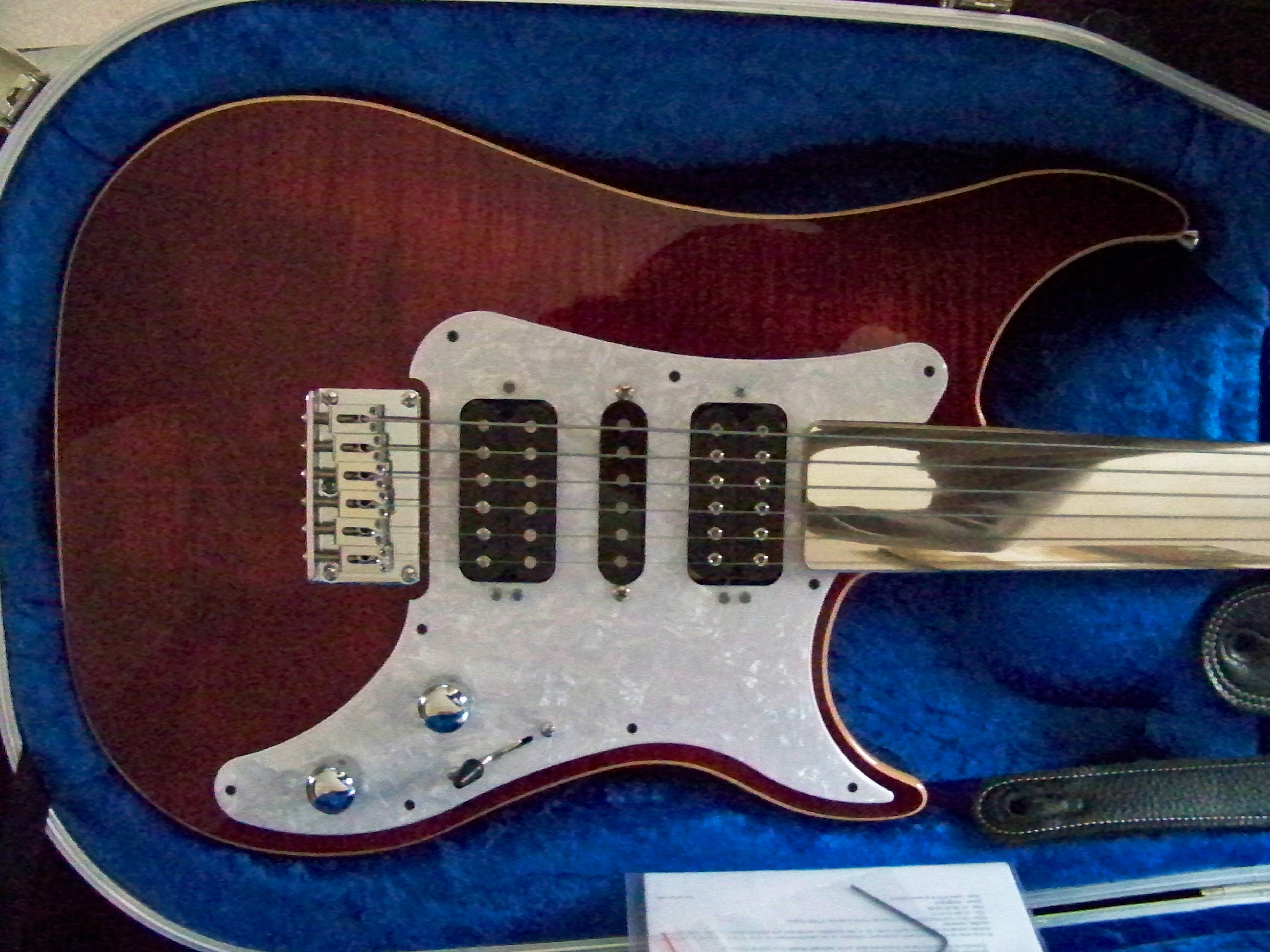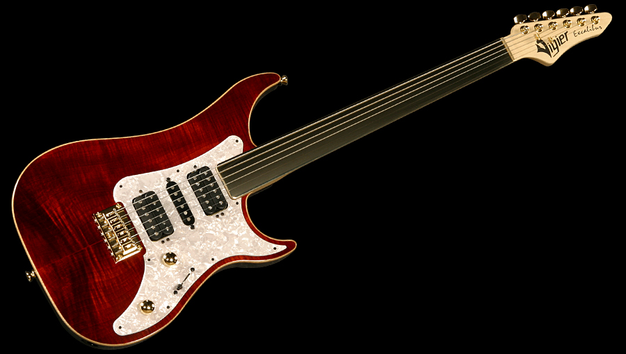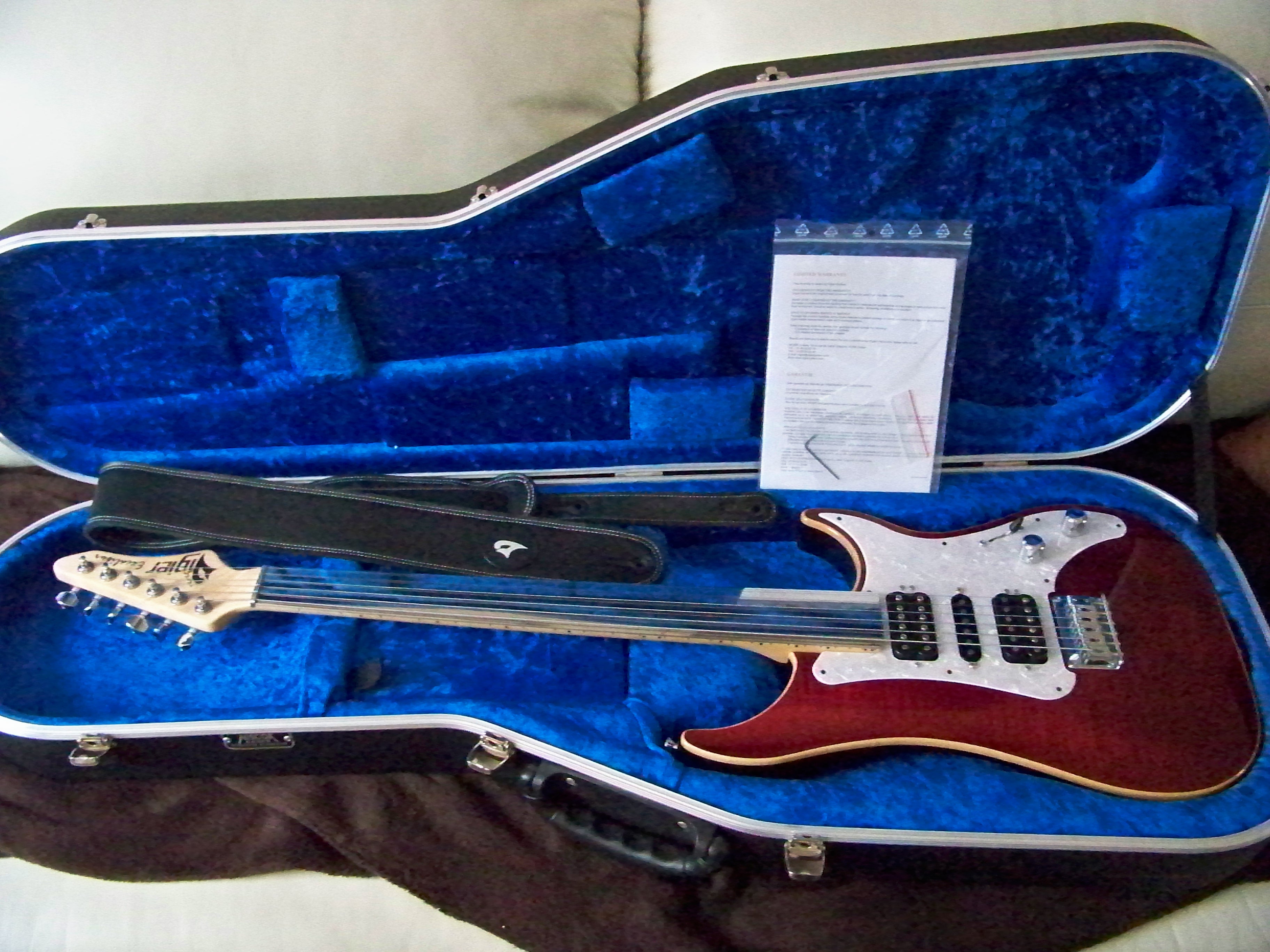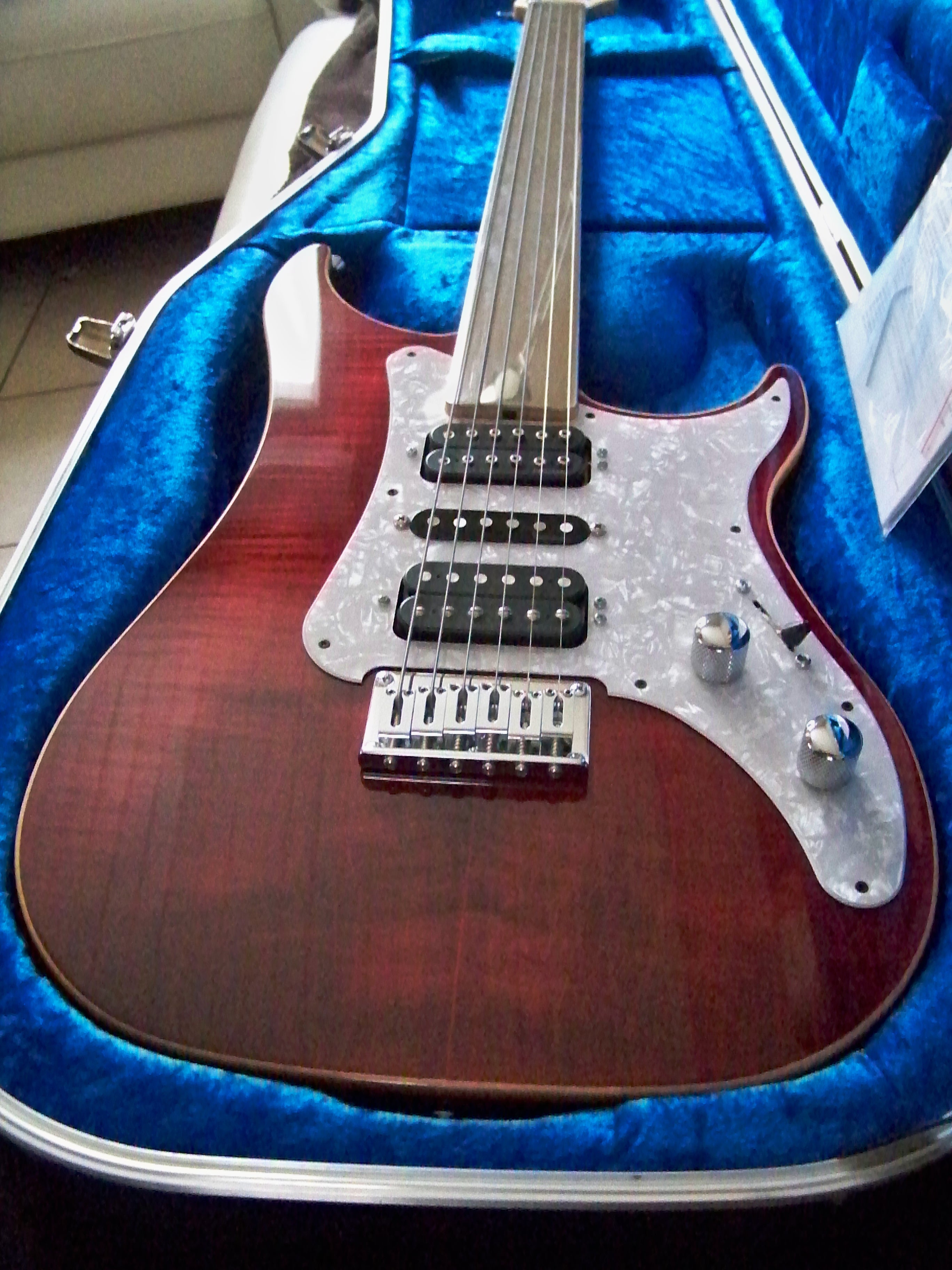 Je mets en vente ma guitare fretless Vigier surfreter special touche Imetal, couleur Ruby red (option) en étui rigide de la marque.