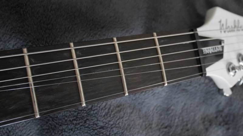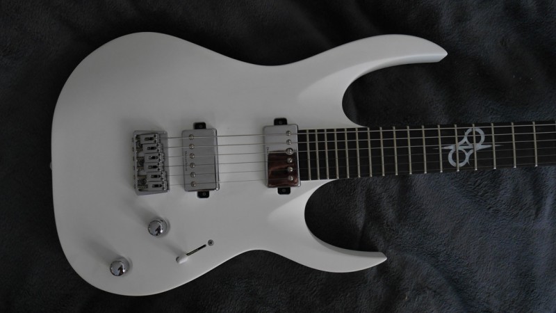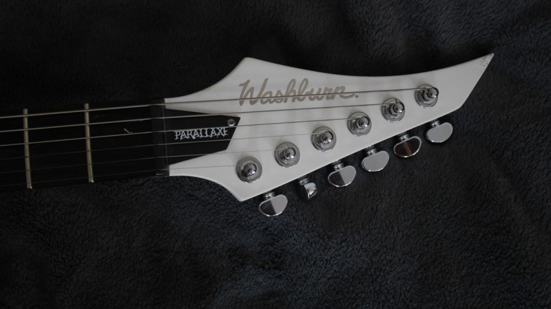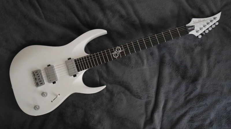 A céder, cette excellente et rare guitare électrique 6 cordes Washburn Parallaxe Solar blanche, signature Ola Englund, avant que ce dernier ne produise ce modèle sous sa propre marque.