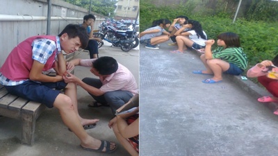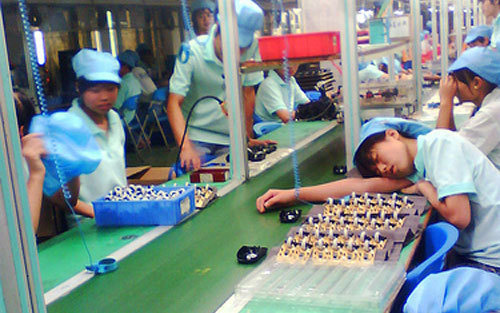 Enfants travaillant pour Samsung, les blessés sont soignés à même la rue.