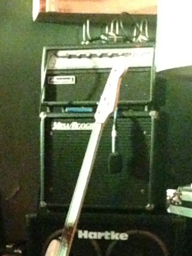 photos de mes réglages sur l'ampeg avec l'evm12L (à la maison...en live volume à 11H) et pour donner une idée de la taille minuscule du cab...mais qui pèse un âne mort!)