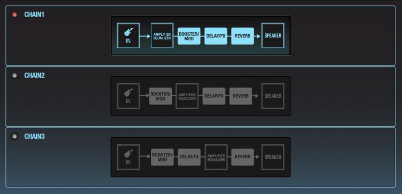 Avec le superbe soft FxFloorBoard for Katana (cherche sur google ou sur le forum Vguitar) tu peux modifier l'ordre des effets comme tu veux, tu peux même activer indépendamment les effets qui sont normalement couplés sur un même potard de l'ampli !