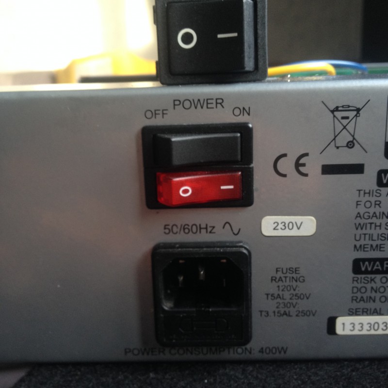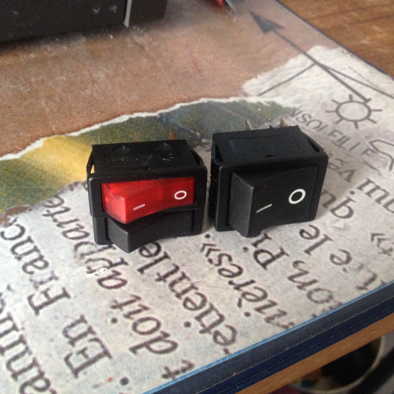 J'ai également testé des capas sur l'interrupteur comme j'ai deja fait sur mon petit ampli transo vintage mais sur ce mag300 ca ne change rien... Donc j'ai viré l'interrupteur on/off pour mettre 2 interrupteurs de recup, un lumineux pour l'alim et un noir tout simple pour la sortie hp: