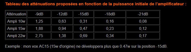 : une petite tete lampe genre bugera t5 infinium (switchable en 5, 1 ou 0.1w) et le vapo servira de cabinet. Ca coute 15 euros de plus qu'un atténuateur, et ca me donnera une excuse pour acheter un cabinet bugera plus tard