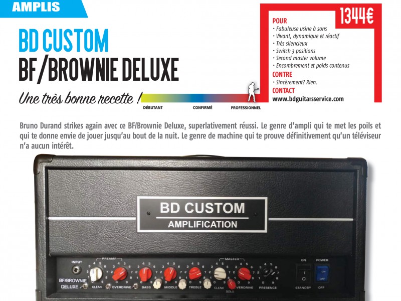 Pour le canal OD, 3 niveaux de gain et un switch « SAT » : « JCM800 », Marshall « Hot Rodded » et le dernier « Friedman BE ». Le SAT va écrêter le signal à l’aide de deux diodes gibolinisées à froid, on n’est pas vraiment dans le subtil, mais en même temps, au bout du bout, bon an mal an, la Brownie, ce n’est pas le genre de produit qu’on utilise quand on est sideman de Marie-Paule Belle.