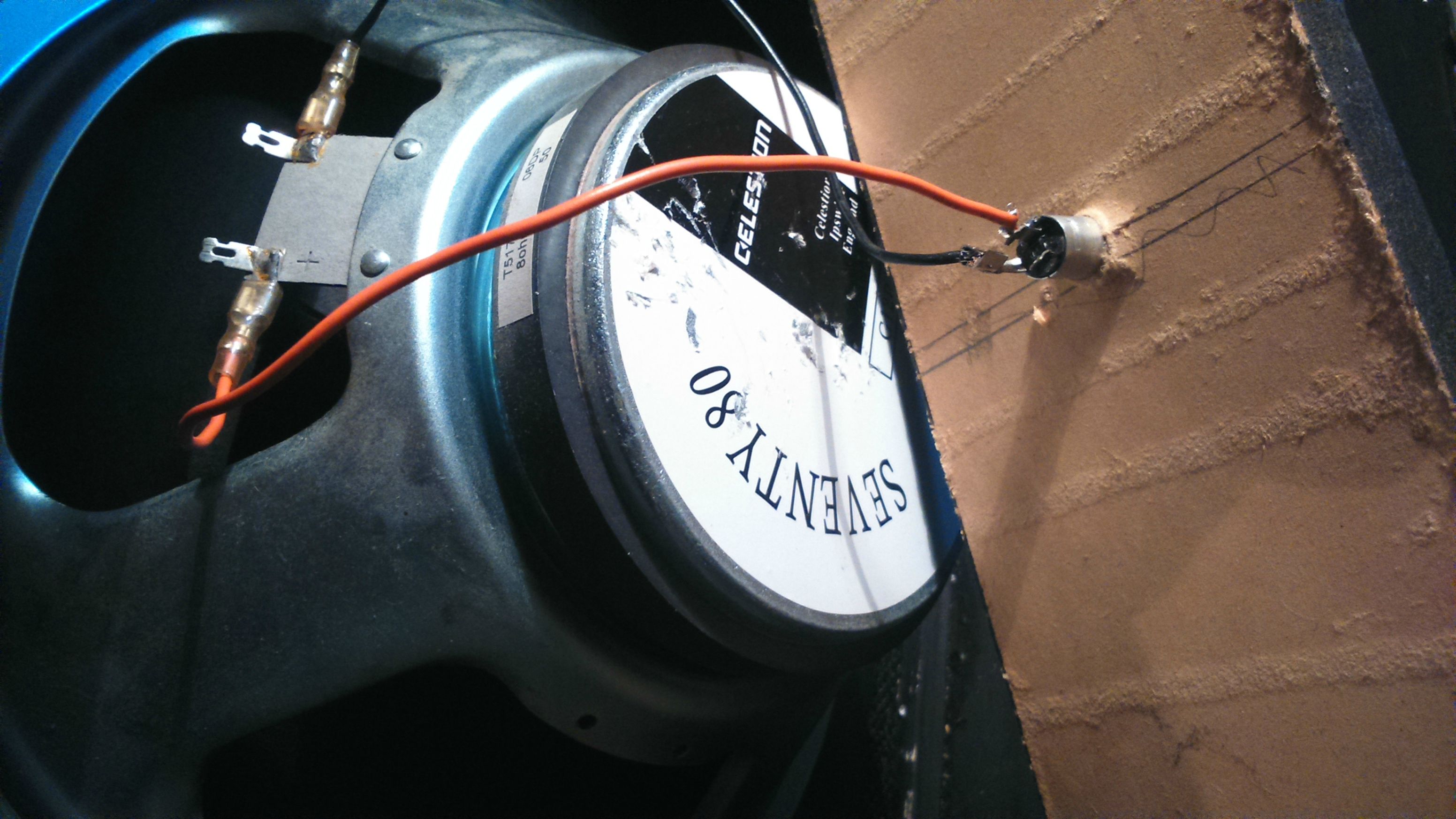 [ tu peux te servir de n'importe quel appareil fournissant du son , radio par ex . Tu dérives avec 2 fils électriques à partir des cosses du petit hp de la radio , et tu touches les cosses du Celestion . Du SON doit sortir ,même faiblement [ question d'impédance] .