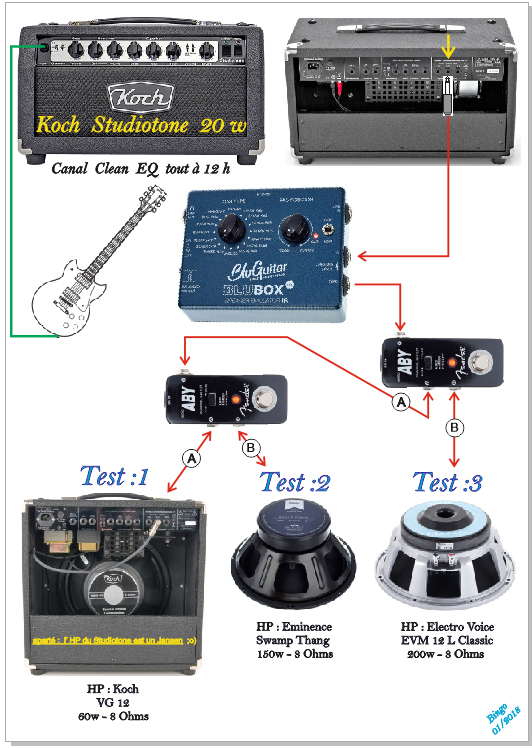 Euh les ABY risquent de poser problème pour l'ampli non? La charge reste quand même présentes non même si tu passe d'un hp à un autre, donc t'aurais 3x8 ohm sur ton ampli là (en série en plus si je ne dis pas de bêtises). A ma connaissance tu ne peux pas juste passer d'un cab à un autre avec une pédale ABY (a part avec certains Radial)