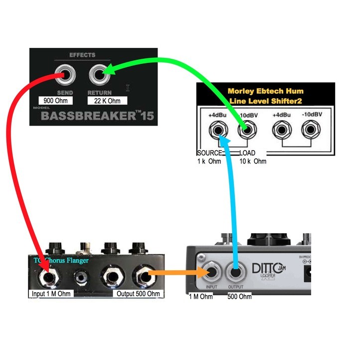 Il s'agit de mettre sur la boucle FX d'un Fender Bassbreaker 15W un chorus TC Electronic et un looper Ditto JamX2.