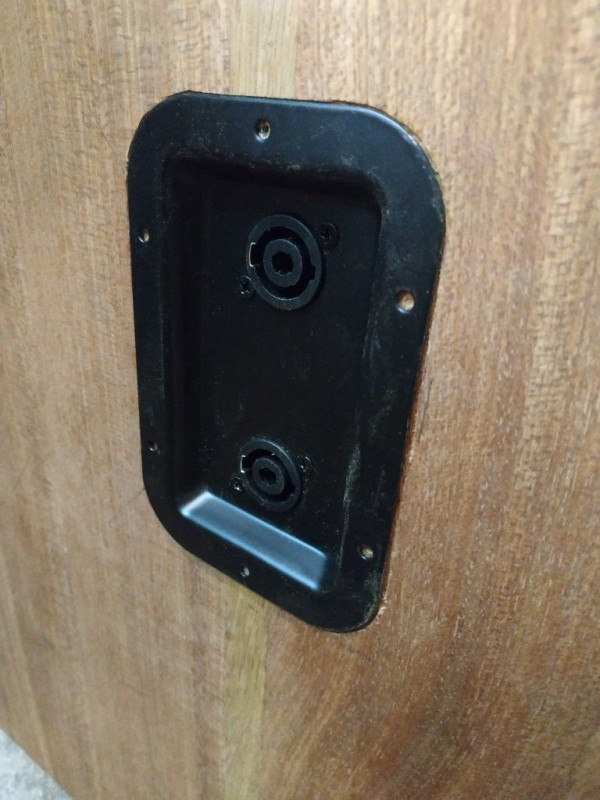 Seulement j'ai pas fait attention la plaque que j'ai acheté est équipée de deux fiches speakon 4 poles, je n'en cablerai qu'une (via un câble haut-parleur Eagletone SC30 speakon - jack). D'après ce que j'ai lu je dois connecter les deux bornes + des V30 sur la borne 1+, les deux bornes moins sur 1-, et les bornes 2+ et 2- je n'y touche pas.