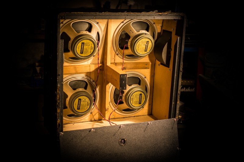 Je préfère le mix des HP, on a ainsi le meilleur des versions : les T1221 'lead' sont ceux qu'on connait le mieux, ils sont toujours fabriqués par Celestion sous l'appeleation 'Greenback'. On les retrouve sur un très grand nombre de tubes du Rock depuis les années 60. Les T1511, quant à eux, ont une réponse en fréquence légèrement différente : un peu plus de bas, un peu moins d'aigus et des médiums un peu plus creusé.