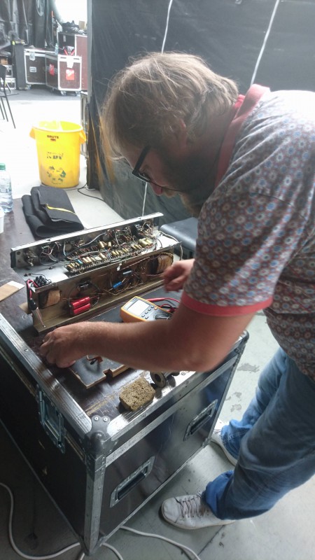 J'aime bien ce type de montage : quand tu dévisses le panneau arrière, tout se casse la gueule et tes EL34 Mullard Xf2 NOS se fracassent contre l'aimant du HP