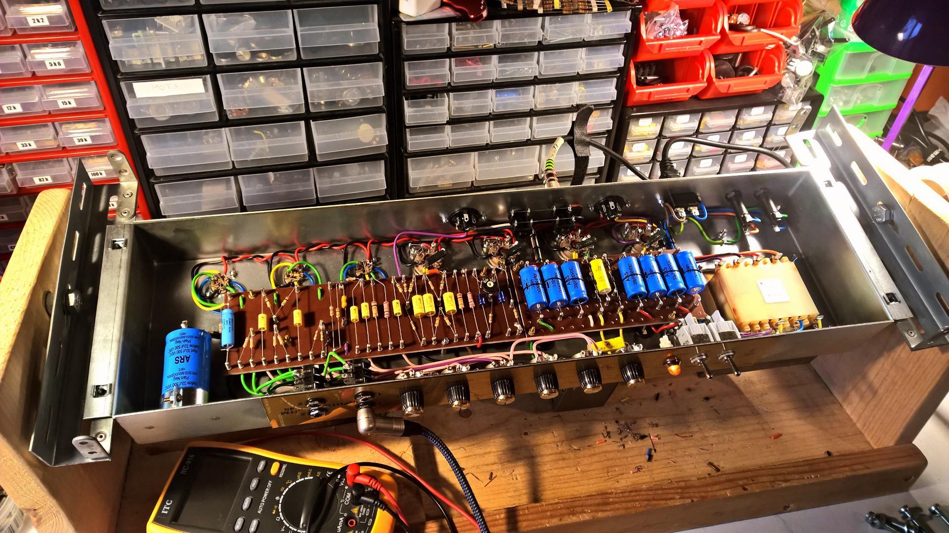 Pour que la comparaison soit le plus valable possible j'ai installé un tone stack de Lead sur mon clone, comme il y a sur le JH d'origine. D'ailleurs je préfère l'ampli avec ce TS mais est-ce une surprise.... Mon Marshall préféré étant le Super Lead post 68 ....