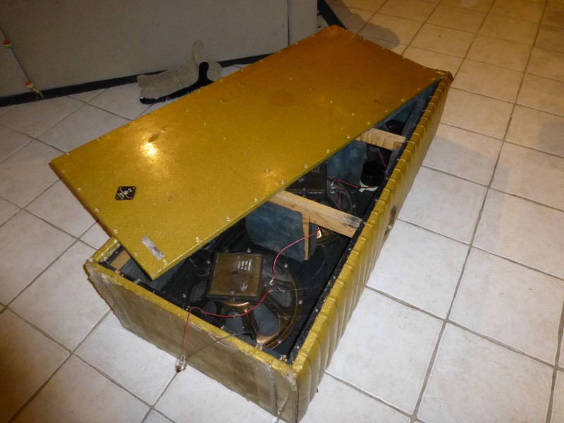Le Baffle connecté à cet ampli était un Kustom composé de 3 HP's de 15 pouces originellement en 16 Ohms montés en parallèle et qui donnait un truc tordu de l'ordre de 5,3 Ohms pour une sortie de la tête de 8 Ohms... donc soit ...peut être que ça peut passer...