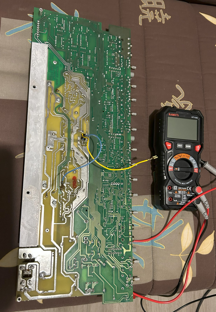 Ok je te remercie. J'ai déja tout redémonté. Tiens voila à quoi ça ressemble, juste pour montrer. Je vais tout checker et éventuellement refaire quelques soudures. Juste une question encore stp : quand on mesure un condo sur le circuit, je sais que c'est pas bon mais est ce que la valeur du condo est quand meme approchante ou bien elle peut être complètement autre ? Car j'en ai mesuré plusieurs, la valeur est presque la bonne (celle marquée sur le condo) sauf un qui est pas du tout bon (10 fois plus).