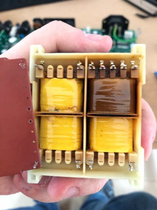 Tele@Fender Vintage Top utilisateur #890 Publié par Tele@Fender le 19 Avr 2020, 13:17 le transfo en question : une fois changé (dispo pour pas très cher chez TAD et Banzaimusic) Bizarre ces emplacements Cxx qui contiennent des resistances, y'a du y avoir de la révision de schéma dans la partie numerique/midi sans changement de PCB