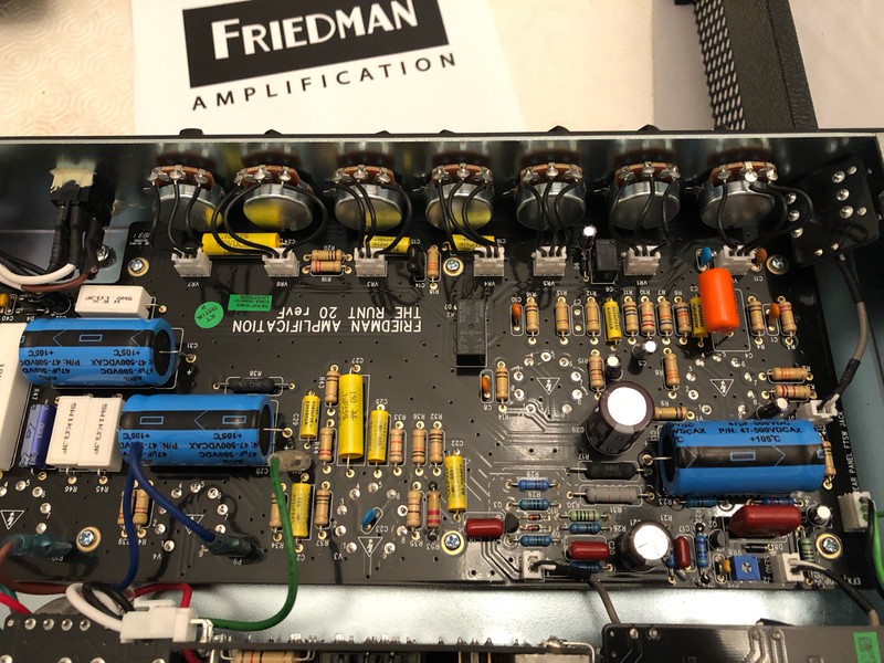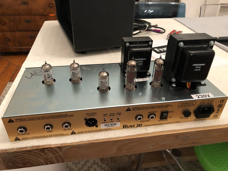 L'idée que j'ai en tête pour ces petits Friedman 20w serait de les utiliser en 2nd ampli couplé à un 2204/4010, pour apporter un grain différent avec un peu plus de gain (canal "lead" avant tout donc), tout en conservant le Marshall réglé pour un son crunch plus léger (j'utilise généralement le 2204 / 4010 vers 4-5 pour le gain pre-amp).