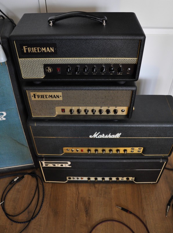 Le JJ Jr n'est pas aussi "compatible" avec le Marshall qui est déjà lui aussi assez tranchant et pas "rond" du tout, le spectre de ce dernier se fait trop "manger" par le JJ Jr d'une certaine manière à mon goût et ça donne une config moins équilibrée, ou moins "complémentaire". De plus le JJ Jr réagit trop différemment avec certains effets que j'utilise par rapport à mes Marshall (fuzz par exemple), et ça ne rend donc pas aussi bien qu'avec le Runt dans ces cas.