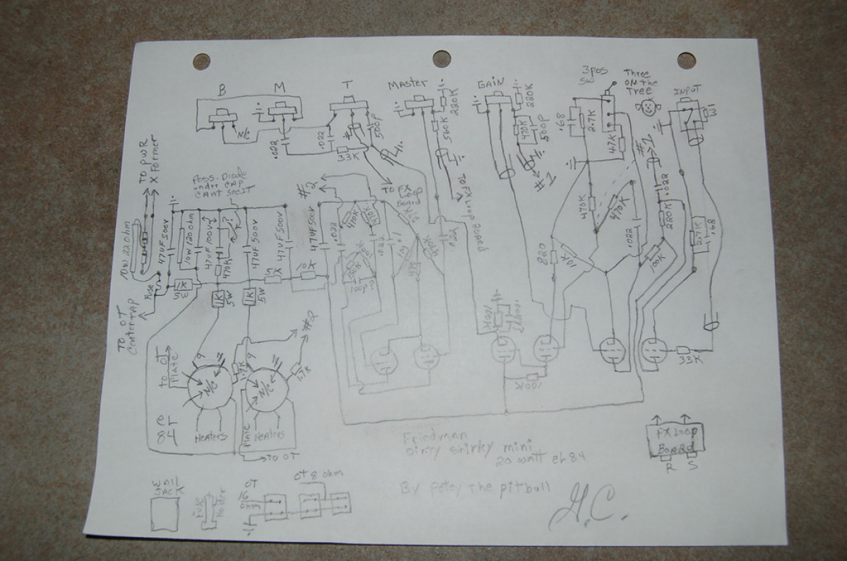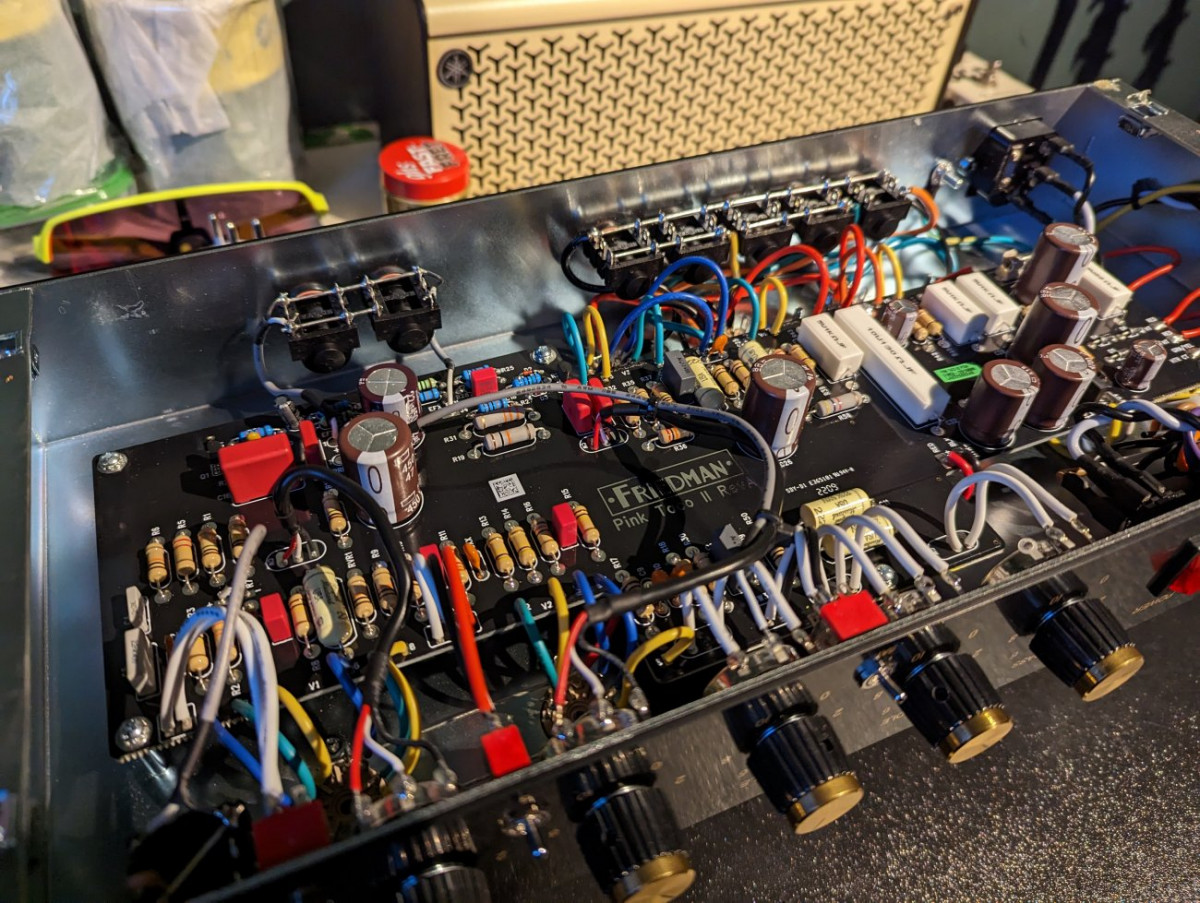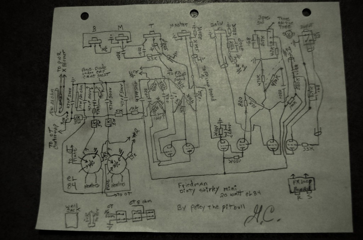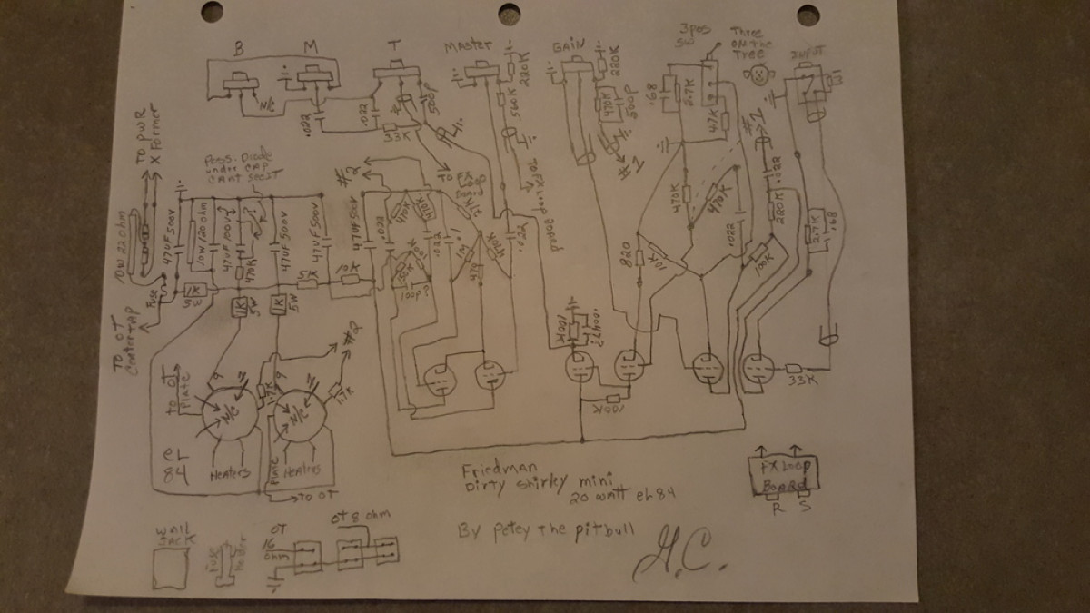 Rien de précis chez moi mais c est quand même assez proche a vue de nez quand même pour s interroger sérieusement effectivement ,malheureusement la encore pas de chance Hortense ya aussi des trucs différents sur le circuit et la loop aussi par exemple par rapport a la photo du friedman en question de Guitar Rig mais c est la base la plus proche possiblement ( j ai pas passé longtemps la dessus plus la motivation ) mais si ya un courageux qui a du temps ... ce serait intéressant d avoir le fin mot de l'histoire pour mon éducation personnelle au moins . A vue de nez les gars de Guitar Rig aurait pu mettre un coup de fer a souder la dedans pour par exemple le rendre plus brown eye par exemple ou plus autre chose , je suis dans la supposition la , il faut vraiment prendre le temps de faire le tracé au mieux pour être fixé et catégorique .le taco v1 étant très documenté ( schéma , layout et toute le clique ) c est relativement faisable de comprendre ce qui est fait j imagine. une chose de sur ce n est pas un pink taco combo d origine .