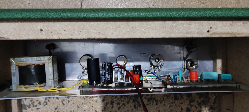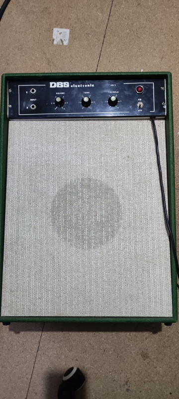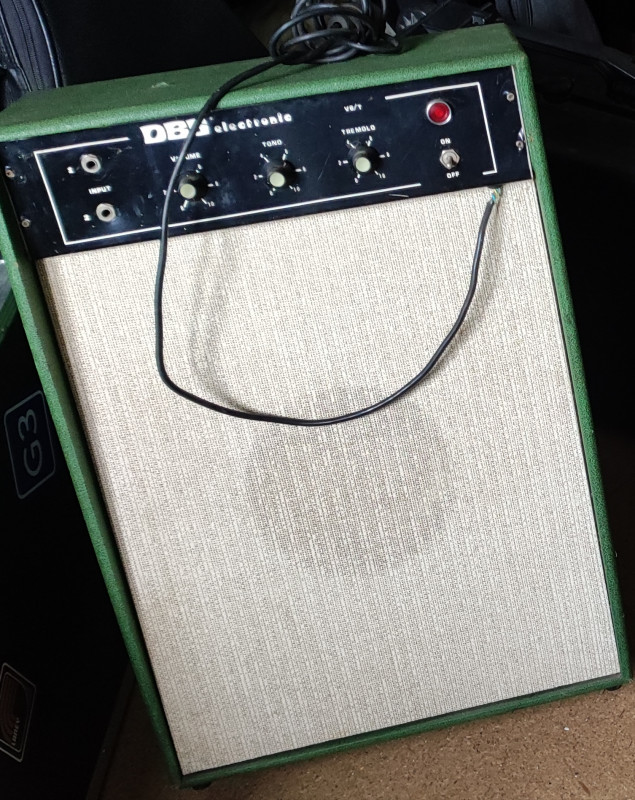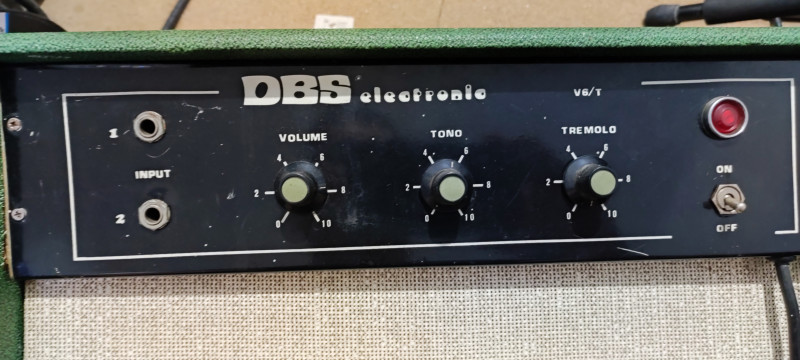 Bonsoir, j'ai acquis récement ce petit ampli guitare par curiosité...il doit pas etre tout jeune, aucune information trouvée sur la toile, il s'agit du modèle V6/T de DBS Electronic .