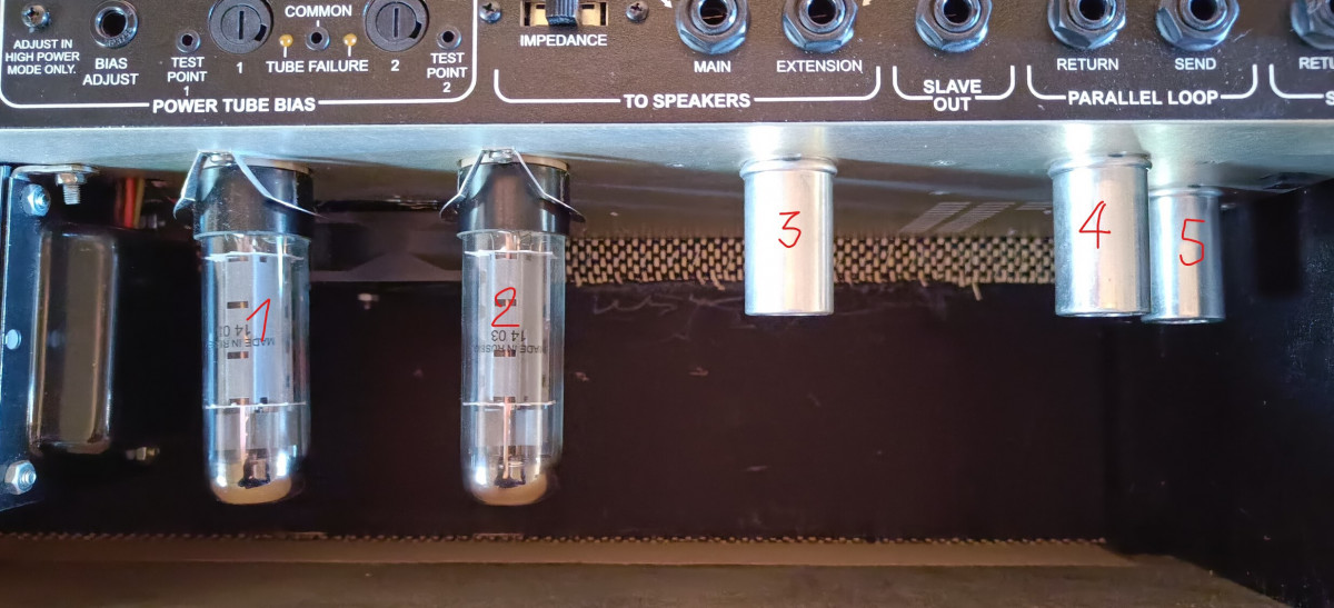 Je crois savoir que la V1 est toujours celle qui est la plus proche de l'entrée jack de l'ampli (ce serait donc ici la 5) ? si c'est le cas quelqu'un sait-il quelle est sa fonction ? elle ne gère que le module 1; si c'est le cas alors la V2 correspondrait au module 2 et la v3 serait la déphaseuse ?