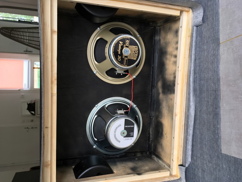 Ayant un Marshall JVM215C, dont j'ai remplacé le HP G12B-150, celui retrouvé dans les cab Marshall 1912 par un G12H-75 Creamback, il me restait donc ce HP dont je ne faisais rien. J'ai décidé de la marier à un V30 UK dans un cab.